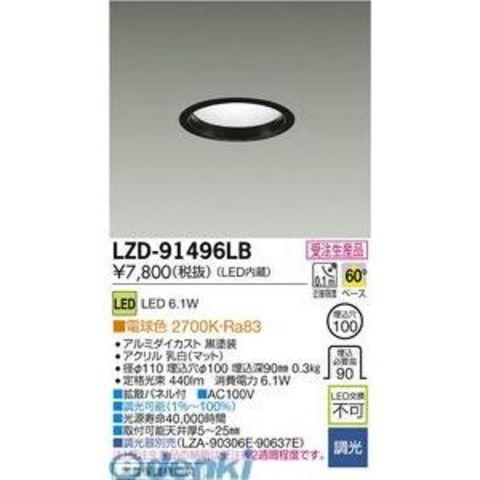 【受注生産品 納期-約1.5ヶ月】大光電機 DAIKO LZD-91496LB LEDダウンライト LZD91496LB