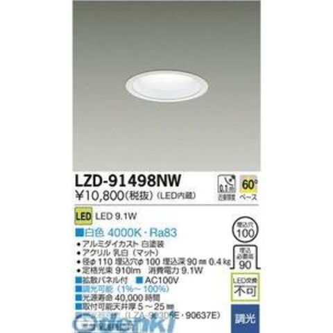 大光電機 DAIKO LZD-91498NW LEDダウンライト LZD91498NW