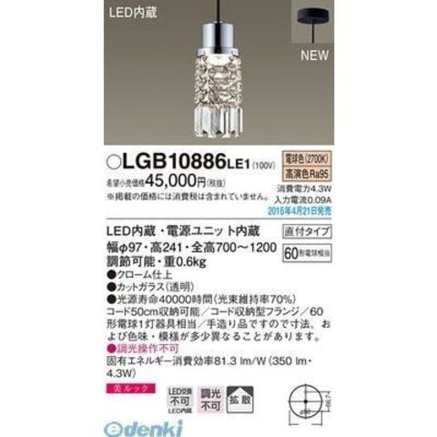 パナソニック LGB10886LE1 LEDペンダント直付カットガラス Panasonic 電球色 小型ペンダント 直付タイプ