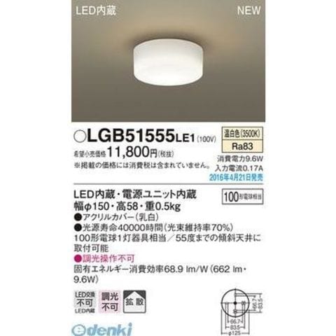 パナソニック LGB51555LE1 LEDシーリングライト(温白色)100形 Panasonic LED小型シーリングライト