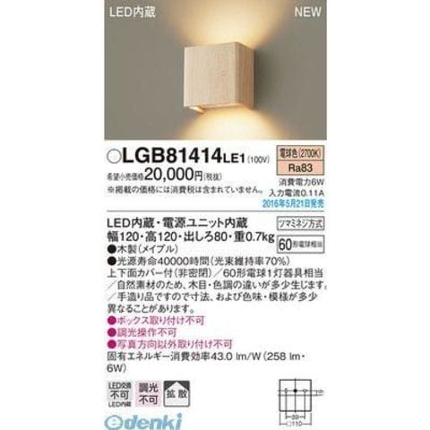 パナソニック LGB81414LE1 LEDブラケット 無垢材 メイプル PANASONIC 壁直付型 電球色 照明器具