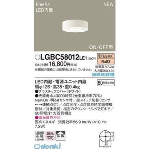 パナソニック LGBC58012LE1 FreePaダウンシーリング(電球色) 小型シーリングライト LED 天井直付型