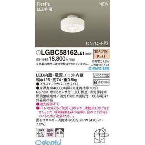 パナソニック LGBC58162LE1 FreePaダウンシーリングトイレ用 電球色 Panasonic シーリングライト