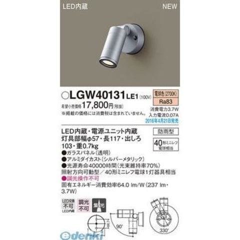 パナソニック LGW40131LE1 スポットライト 壁付タイプ 40形 防雨型 Panasonic エクステリアライト 電球色