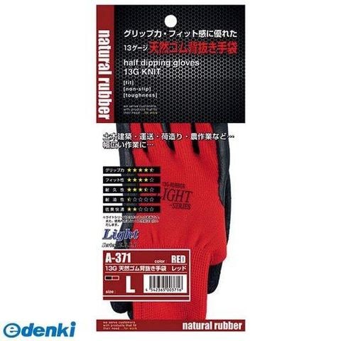 直送 代引不可・他メーカー同梱不可 おたふく手袋 4542365003716 13G天然ゴム背抜き手袋 レッド L 天然ゴム背抜き手袋 A-371RL