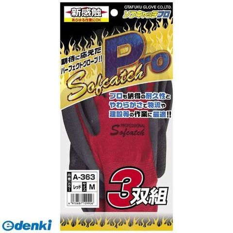 直送 代引不可・他メーカー同梱不可 おたふく手袋 4970687109906 A-363 レッド ソフキャッチPro 3P M OT