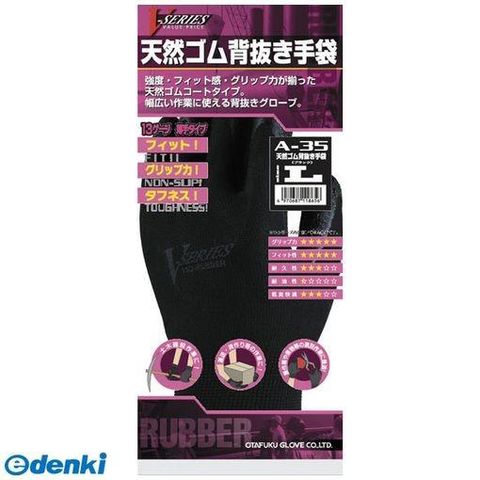 直送 代引不可・他メーカー同梱不可 おたふく手袋 4970687118656 天然ゴム背抜き手袋 ブラック L A-35-BLK-L A35【キャンセ