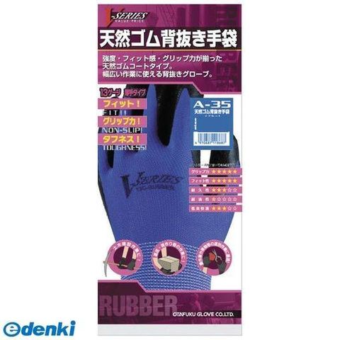 直送 代引不可・他メーカー同梱不可 おたふく手袋 4970687118694 A-35 ブルー M Vシリーズ ゴム背抜キ A-35