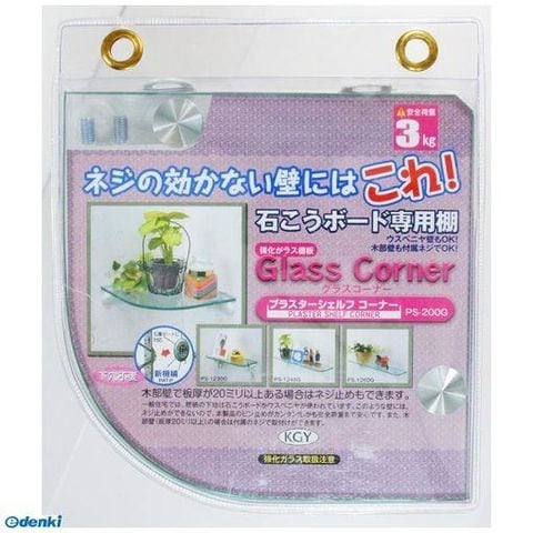 ケイジーワイ工業 PS-200G プラスターシェルフコーナー 透明 約200RX6mm PS200G