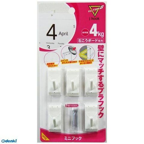 日軽産業 MC-003W マジッククロス8 Jフック ミニフック ホワイト 5個入り MC003W