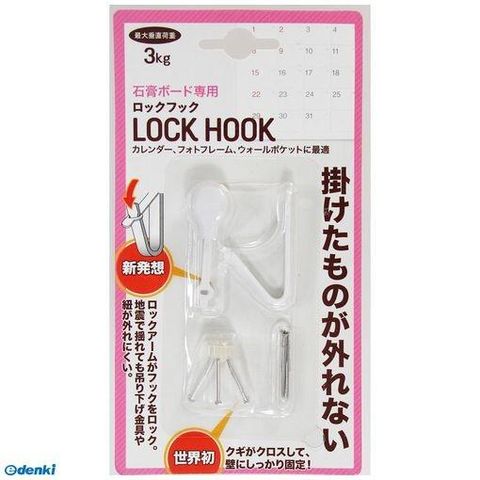 ●ロックアームがフックをロック、地震で揺れても吊り下げ金具や紐が外れにくい!