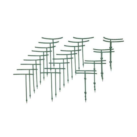 草花の鉢植えや寄せ植え、花壇などでのレイアウトで、草花が横に広がって、徐々にダラ~んとした感じになるあの感じ。杭を挿したり、ヒモで引っぱったりと意外と苦労し、景観も損なわれますよね。そこでオススメなのが、カンタンに手で挿すだけで草花の広がりを抑え込むことができるこのセットです。上部の支え部分はアール形状で草花にピッタリ、しかも茎の横すべりを抑えるスベリ止めデザインなので、セットした草花のバランスを整えます。通常の高さには固定タイプで、また、背の高い草花には伸縮タイプを使ってアレンジしてください。ワンポイントのささえにも最適です。