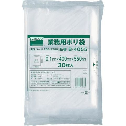 トラスコ TRUSCO B-4055 厚手ポリ袋 縦550X横400Xt0.1 透明 30枚入 B40558539