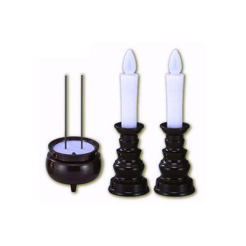 ●材質:ろうそく/炎=PE、ろうそく=PP、燭台=ABS、光源=黄色LED お線香/線香・香炉=ABS、光源=赤色LED