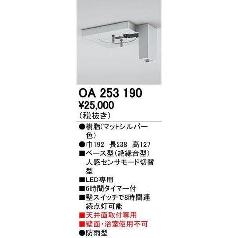 オーデリック ODELIC OA253190 ベース型センサ 天井面取付専用 OA253190屋外用ベース型センサ
