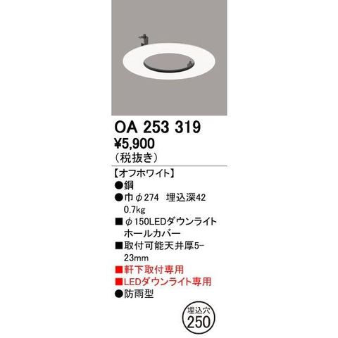 オーデリック ODELIC OA253319 ダウンライトホールカバー LEDダウンライト用ホールカバーOA253319