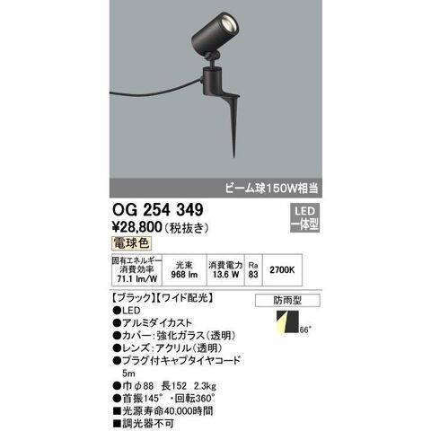 オーデリック ODELIC OG254349 LEDスポットライト エクステリアライト ワイド配光 ビーム球150W相当 防雨型