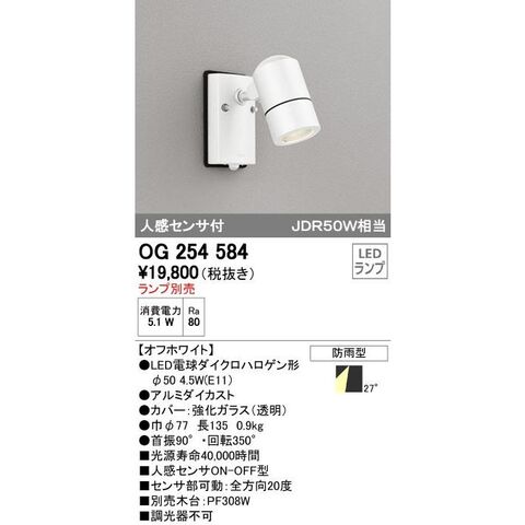 オーデリック ODELIC OG254584 LEDスポットライト エクステリアライト オフホワイト 玄関照明 防雨型