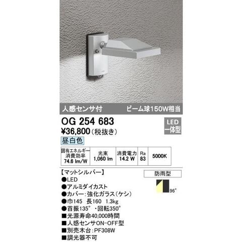 オーデリック ODELIC OG254683 LEDスポットライト 人感センサ付 昼白色 防雨型 エクステリアライト
