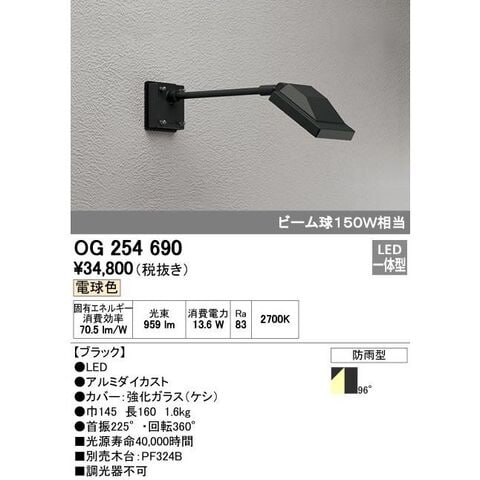 オーデリック ODELIC OG254690 LEDスポットライト 電球色 防雨型 ビーム球150W相当 エクステリアライト