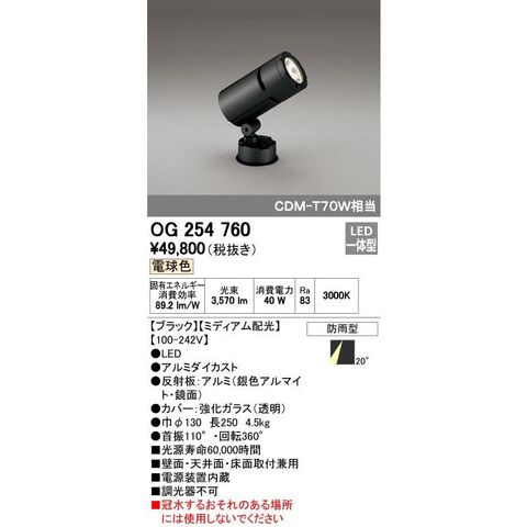 オーデリック ODELIC OG254760 LEDスポットライト 防雨型 ミディアム配光 電球色 エクステリアライト CDM-T
