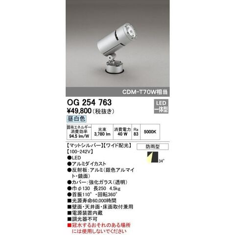 オーデリック ODELIC OG254763 LEDスポットライト 防雨型 ワイド配光 昼白色 エクステリアライト CDM-T