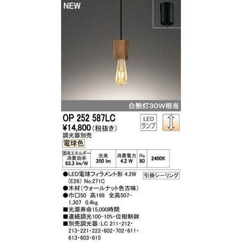 オーデリック ODELIC OP252587LC LEDペンダント 電球色 LEDペンダントライト