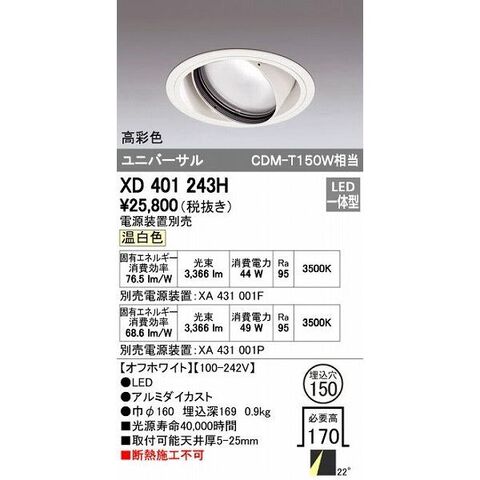 オーデリック ODELIC XD401243H LEDダウンライト CDM-T150Wクラス