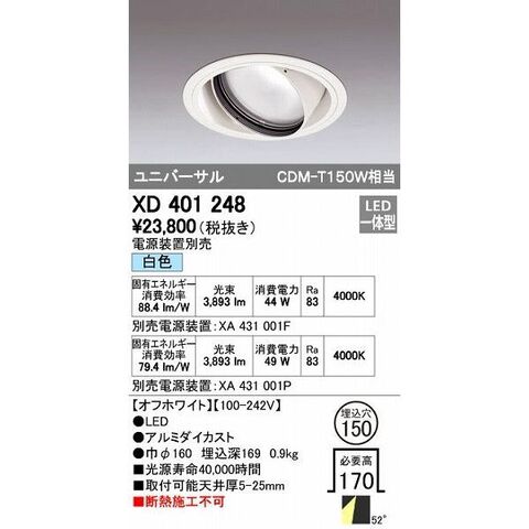 オーデリック ODELIC XD401248 LEDダウンライト XD401248LEDユニバーサルダウンライト