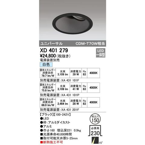 オーデリック ODELIC XD401279 LEDダウンライト XD401279LEDユニバーサルダウンライト