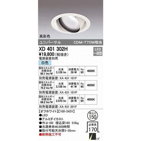 オーデリック ODELIC XD401302H LEDダウンライト CDM-T70Wクラス