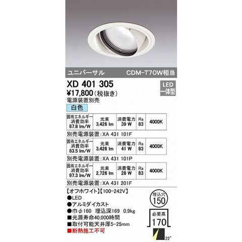 オーデリック ODELIC XD401305 LEDダウンライト XD401305LEDユニバーサルダウンライト