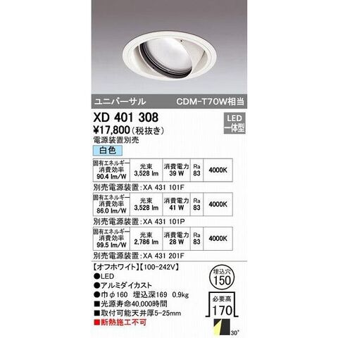 オーデリック ODELIC XD401308 LEDダウンライト XD401308LEDユニバーサルダウンライト
