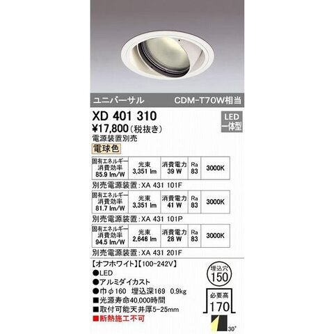 オーデリック ODELIC XD401310 LEDダウンライト XD401310LEDユニバーサルダウンライト