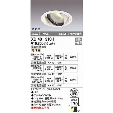 オーデリック ODELIC XD401310H LEDダウンライト CDM-T70Wクラス