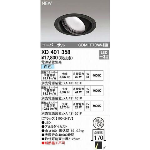 オーデリック ODELIC XD401358 LEDダウンライト オーデリックLEDユニバーサルダウンライトXD401358
