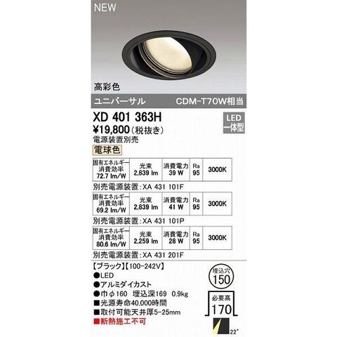 オーデリック ODELIC XD401363H LEDダウンライト テクニカルライト