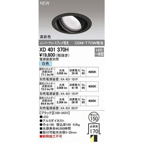 オーデリック ODELIC XD401370H LEDダウンライト テクニカルライト