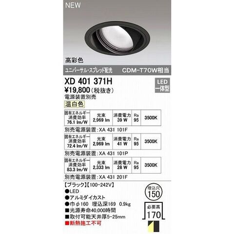 オーデリック ODELIC XD401371H LEDダウンライト テクニカルライト