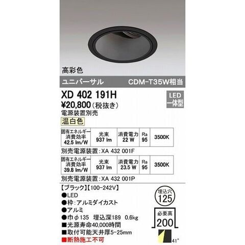 オーデリック ODELIC XD402191H LEDダウンライト CDM-T35Wクラス