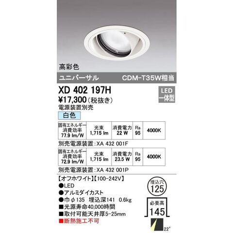 オーデリック ODELIC XD402197H LEDダウンライト CDM-T35Wクラス