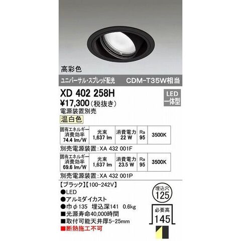 オーデリック ODELIC XD402258H LEDダウンライト XD402258HLEDユニバーサルダウンライト