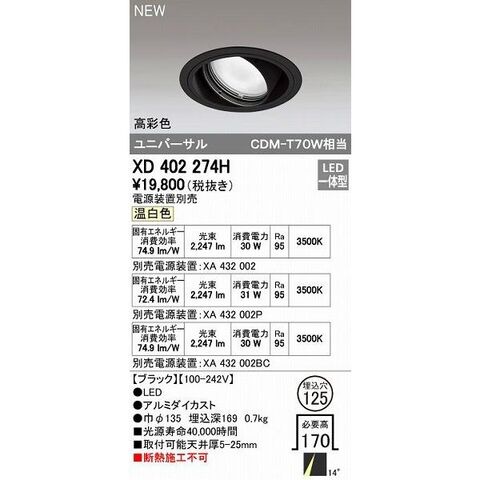 オーデリック ODELIC XD402274H LEDダウンライト オーデリックLEDユニバーサルダウンライトXD402274H