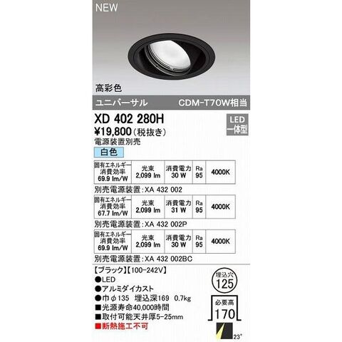 オーデリック ODELIC XD402280H LEDダウンライト オーデリックLEDユニバーサルダウンライトXD402280H