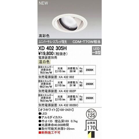 オーデリック ODELIC XD402305H LEDダウンライト テクニカルライト