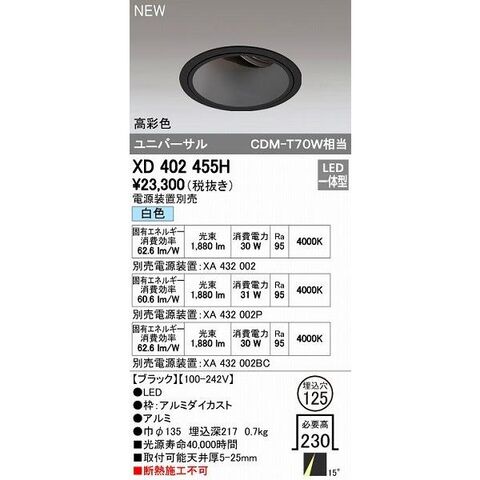 オーデリック ODELIC XD402455H LEDダウンライト テクニカルライト
