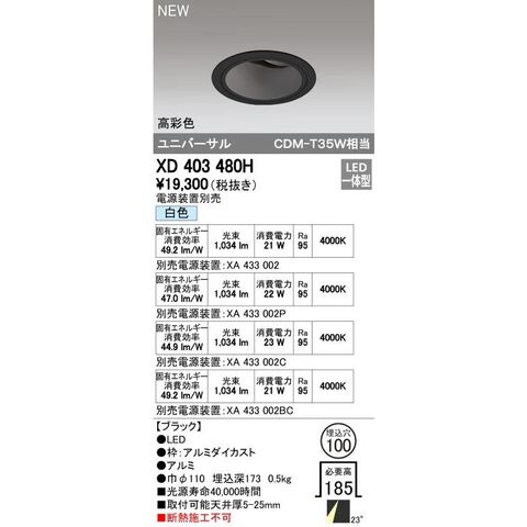 オーデリック ODELIC XD403480H LEDダウンライト オーデリックLEDユニバーサルダウンライトXD403480H