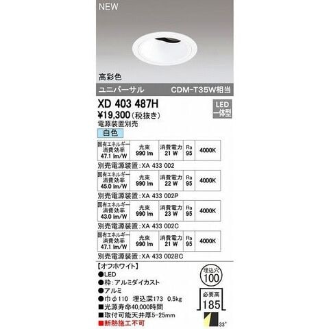 オーデリック ODELIC XD403487H LEDダウンライト テクニカルライト
