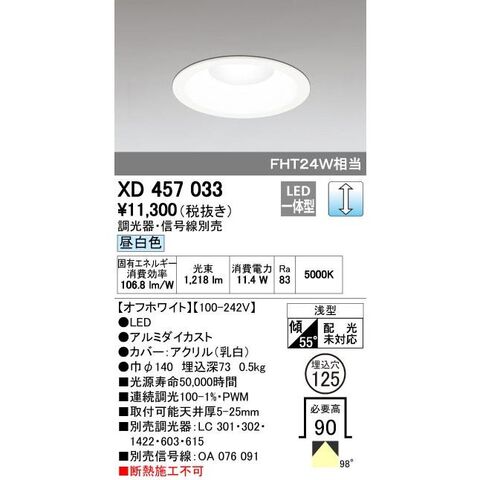 オーデリック ODELIC XD457033 LEDダウンライト 昼白色 M形 XD457033LEDベースダウンライト