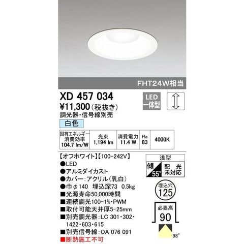 オーデリック ODELIC XD457034 LEDダウンライト 白色 M形 XD457034LEDベースダウンライト